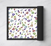 Rainbow Notes is een levendig, vrolijk ontwerp met kleurrijke muzieknoten op een helderwitte achtergrond. De dynamische indeling en de heldere kleuren staan voor creativiteit, beweging en een goed humeur.