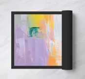 "Soft Collision" captures the poetic tension between chaos and calm in a symphony of pastel brushstrokes. The textured oil-like layers blend lavender, peach, mint, and warm yellow in a dance of light and softness. This artwork brings a soothing, modern energy to any space — perfect for interiors that seek to combine emotion with elegance. Ideal for living rooms, creative studios or contemporary nurseries, this piece radiates both minimalism and complexity.