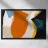 Scherpe kleurblokken in oranje, groenblauw, zwart en wit grijpen in elkaar in een ritmisch spel.