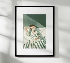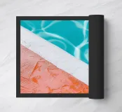 Deze minimalistische afdruk van een zwembad legt de serene schoonheid van een turquoise zwembad vast, met het feloranje contrast van de rand en het zachte, rustige water. De eenvoud van het ontwerp roept ontspanning en rust op, waardoor het een ideaal stuk is om een vredige, moderne sfeer te creëren. De strakke lijnen en levendige kleuren maken het een perfecte aanvulling voor elke moderne ruimte. Dit kunstwerk is ideaal voor moderne woonkamers, slaapkamers of kantoren en geeft je huis een verfrissende, stijlvolle uitstraling.