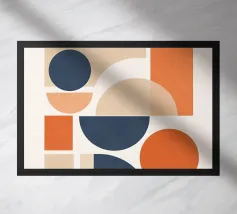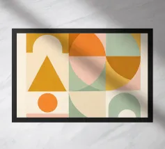 Ein modernes Poster im Stil abstrakter Geometrie. Sanfte Farben und harmonisch angeordnete Formen verleihen dem Motiv eine ruhige, ausgeglichene Wirkung – perfekt für Wohn- oder Arbeitsräume mit klarer Ästhetik.