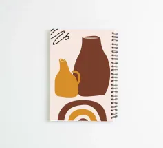 vaas kan aardewerk keramiek decoratief object woondecoratie abstracte vormen geometrische vormen lijnen rondingen warme kleuren aardetinten modern ontwerp minimalistisch ontwerp interieurdecor huishoudelijke artikelen keukengerei stilleven silhouet kunstdruk