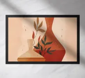 vaas bladeren planten decoratie aardewerk keramiek woondecoratie tak natuur minimalisme organische vormen interieurontwerp aardetinten botanisch bloemig compositie decoratieve elementen stilleven modern ontwerp elegantie