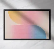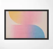 Twee halfronde vormen verbonden door zachte kleurverlopen in roze, geel en lichtblauw - dit minimalistische kunstwerk straalt lichtheid, harmonie en rust uit. Ideaal voor lichte, moderne kamers, kinderkamers of Scandinavisch geïnspireerde interieurs. De zachte pastelkleuren brengen warmte en balans in elk wandontwerp.