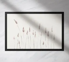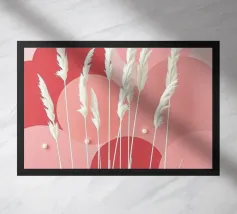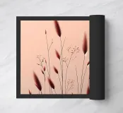 Fijne structuren, tere bloemen en fragiele grassprieten lopen als filigraanaders door het beeld en creëren een rustgevend en tegelijkertijd diep ontroerend tafereel. De dominante roze tinten geven het werk een ingetogen elegantie en nodigen de kijker uit om de schoonheid in eenvoud te ontdekken. Deze minimalistische compositie fluistert zachtjes over de vergankelijkheid van de natuur en de subtiele maar krachtige schoonheid die verborgen ligt in elk moment van het leven.