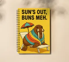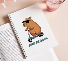 Een vrolijke capibara met zonnebril ligt op een bankje te genieten van watermeloen met een tropische sfeer. De tekst erboven luidt "I'M NOT LAZY" en eronder "I'M JUST ON CAPYBARA TIME.
