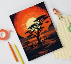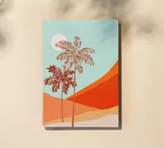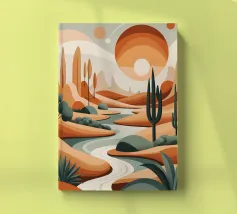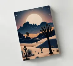 Verzengende zonsondergangen, rode rotsen en de onvergetelijke silhouetten van Joshua bomen. Deze poster vat de rauwe, mystieke essentie van de Californische woestijn samen. Een sterke stijl, zowel grafisch als beschouwend