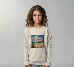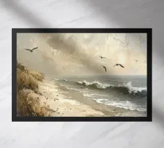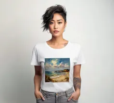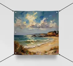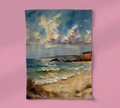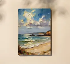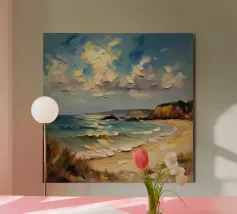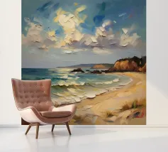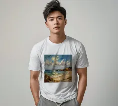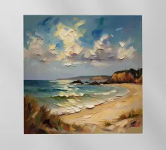 Een gouden strook zijdeachtig zand strekt zich ver en wijd uit en omarmt de turquoise zee als een kostbaar juweel. Het stralende zonlicht kust de kust en werpt glinsterende strepen die glinsteren als goud. Zachte golven fluisteren zachtjes, als een melodieus lied van de oceaan. Het tafereel ontvouwt een rustige, romantische schoonheid - waar de tijd lijkt stil te staan en de ziel één wordt met de uitgestrektheid van de natuur.