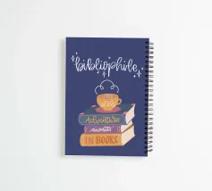 Een ontwerp voor alle liefhebbers van boeken en lezen Dit ontwerp viert de liefde voor lezen met het woord "Bibliofiel" geschreven in een elegant snijteken. Onder een illustratie van een stapel van drie boeken met de zin Adventure Await in Book "voegt een vleugje avontuur en ontdekking toe.in het algemeen