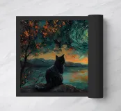 kat meer nachtelijke hemel sterren sterrenstelsel wervelende wolken bomen silhouet reflectie water bergen horizon herfstbladeren schemering schemering gloed landschap natuur kust takken