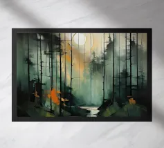 This vibrant and abstract painting captures the essence of a serene forest, with its intricate patterns of trees and colorful foliage. The use of geometric shapes and bold colors creates a visually stunning piece that will add a touch of nature to any space.