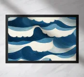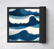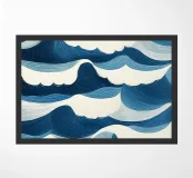 De afbeelding toont golven van de oceaan in blauw en wit - gestileerd, dynamisch en met illustratieve diepte. De stijl doet denken aan handgeschilderde aquarellen of digitale kunst met een fijne textuur. Het ziet er kalm en krachtig tegelijk uit - een esthetisch eerbetoon aan de zee.