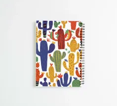 Een speels en kleurrijk patroon van verschillende gestileerde cactussen creëert een leuk, vrolijk en modern ontwerp dat de eigenzinnige schoonheid van woestijnplanten viert.