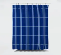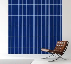 Een helder wit rechthoekig raster tegen een diepblauwe achtergrond, waardoor een strakke en moderne geometrische look ontstaat. Dit tijdloze patroon voegt structuur, helderheid en een subtiele retro-moderne touch toe aan elke ruimte. Perfect voor minimalistische, eigentijdse en eclectisch geïnspireerde interieurs.