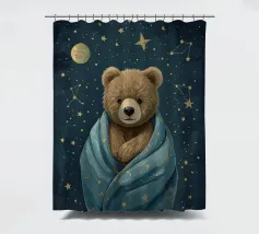 Een speelse illustratie van twee beren die bellen blazen in de ruimte die plezier en verwondering toevoegt aan elk decor of kleding. Perfect voor dromers van alle leeftijden.