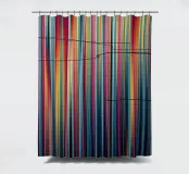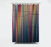 Dit opvallende abstracte kunstwerk "Vibrant Spectrum" toont een dynamisch samenspel van kleur en beweging. Verticale lijnen van verschillende breedte in een rijk palet van diepblauw, vurig oranje, felroze en subtiel geel creëren een ritmische, bijna geweven textuur. Gedurfde, gebarende zwarte streken vegen over het doek, onderbreken de ordelijke lijnen en voegen een element van rauwe energie en spontaniteit toe. Dit werk is een modern en geraffineerd statement, perfect om kleur en visuele interesse toe te voegen aan een moderne woonruimte, kantoor of galerie.