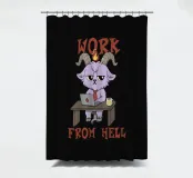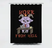 A purple demon goat in a tie sits at a desk with a laptop and coffee, under the phrase “Work From Hell.” The artwork makes a clever pun on daily work feeling like hell, with the demon literally working from hell. Ideal for fans of dark humor, sarcastic office jokes, and anyone who wants to laugh at work struggles.