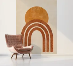 Dit kunstwerk is geïnspireerd door de harmonie van de natuur en combineert organische vormen en aardse kleuren om een gevoel van rust en verbondenheid te creëren. De cirkel en boog staan voor evenwicht en groei, waardoor het een ideaal stuk is voor een sereen en stijlvol huis.