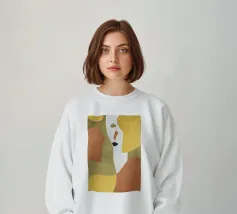 Abstracte vormen in aardetinten creëren een harmonieuze compositie met vloeiende vormen en sterke contrasten. Organische rondingen en vlekken van oker, bruin en olijf vormen het centrale motief.