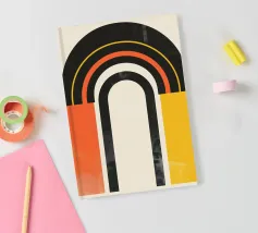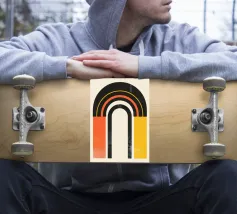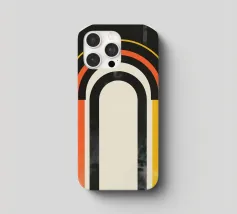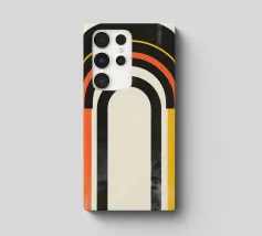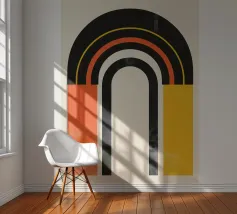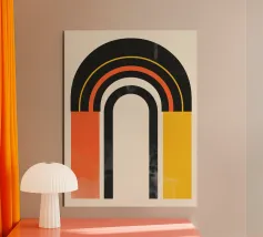 Dit moderne kunstwerk combineert gedurfde kleurovergangen in oranje, geel en zwart met harmonieuze, geometrische bogen. Het abstracte ontwerp creëert een balans van levendigheid en minimalistische stijl en is ideaal voor liefhebbers van moderne woonaccessoires. Perfect als muurschildering, kussen of poster voor de woonkamer, slaapkamer of kantoor - dit motief brengt warmte en een vleugje retro-esthetiek in elke kamer. Een statement van stijlvolle, tijdloze decoratie.