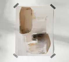 Dit abstracte kunstwerk gebruikt aardetinten van beige, bruin en wit om een harmonieuze en moderne compositie te creëren. Penseelstreken en paletmes technieken worden gebruikt om vloeiende vormen en elegante lijnen te creëren die de textuur benadrukken. Het minimalistische ontwerp nodigt uit tot creatieve reflectie en inspiratie, terwijl geometrische elementen de hedendaagse esthetiek benadrukken.