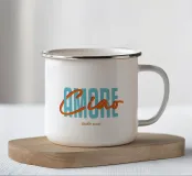 Een visueel liefdesgedicht in drie kleuren en twee talen: Het woord "AMORE" staat groot en lichtblauw op de achtergrond - als een stille schreeuw van verlangen. Ervoor springt "Ciao" in het oog in sterk oranjerood, met een charmant schaduweffect dat diepte en beweging creëert. Eronder, bijna als een handtekening: "studio scusi" in warm mosterdgeel. De beige achtergrond geeft het motief een mediterrane rust - als een zonsondergang in Ligurië.