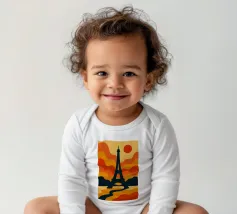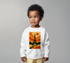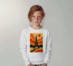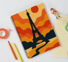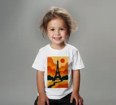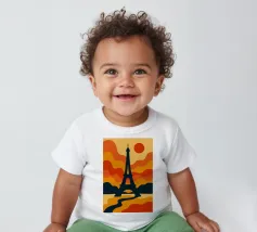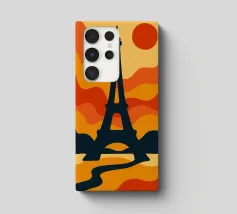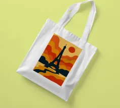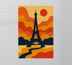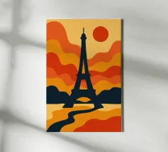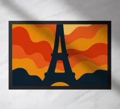 Dompel jezelf onder in een warme, poëtische sfeer met deze levendige illustratie van de Eiffeltoren bij zonsondergang. Met zijn golvende lijnen en oranje tinten verandert deze poster het iconische monument in een echt retro-modern kunstwerk. Perfect voor het verfraaien van elk interieur met een gedurfde, Parijse design touch.