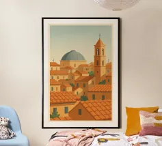 Steden, eilanden, heldere lijnen. Elke poster vangt de ziel van een plek in een pop, retro of minimale stijl. Voor wie graag met zijn ogen reist, horizonten verzamelt en de tijd ophangt aan de muur. Maak een stijlvolle, grafische poster van je favoriete stad. Minimalistisch ontwerp, matte kleuren, mediterrane stijl. Uniek, modern, speciaal voor jou gemaakt.