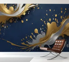 Deze elegante abstracte achtergrond toont een combinatie van goud, zilver en marineblauwe spatten, waardoor een visueel verbluffend ontwerp ontstaat dat ideaal is voor gebruik als achtergrond of digitale kunst.
