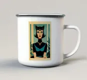 Dit elegante ontwerp toont een gestileerde vrouw met een kattenmasker, gouden ketting en expressieve blik. "Feline Queen" combineert vintage glamour met moderne kracht - een symbool van vrouwelijkheid, zelfvertrouwen en aantrekkingskracht. Met zijn rijke kleuren en heldere lijnen is het motief een echt designstatement - sensueel, mystiek en iconisch tegelijk.