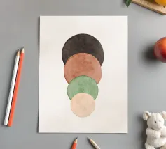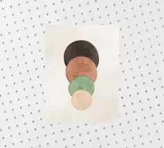 Voeg een vleugje minimalistische charme toe aan je interieur met deze levendige abstracte moderne mid century art print, met een betoverende mix van geometrische, vrij vloeiende aquarelvormen tegen een zachte, crèmekleurige neutrale achtergrond. Met zijn warme Scandinavisch-Japanse uitstraling is het niet zomaar kunst - het is een vibe.