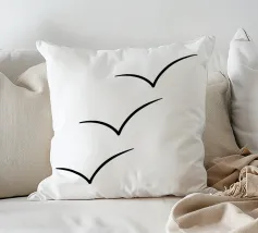 Deze minimalistische meeuwenposter toont drie meeuwen in de lucht, gereduceerd tot elegante bogen. De vogels zijn getekend als lijntekeningen en bewegen diagonaal door het formaat. Dit creëert een rustig meeuwenbeeld dat beweging suggereert zonder rusteloos over te komen. De grote witte ruimte maakt het motief tot een minimalistische afbeelding die ook goed gebruikt kan worden in kleinere ruimtes. Elke vogel is duidelijk herkenbaar.