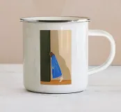 Deze expressieve poster toont een vrouw in een blauwe jas die met haar hoofd tegen een muur leunt - een rustig symbool van overbelasting, bedachtzaamheid of gewoon een van die dagen. Het heldere, minimalistische kleurenpalet in beige, oker en middernachtblauw creëert een sterke grafische compositie met emotionele diepte.