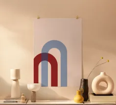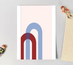 Ervaar modern minimalisme met deze elegante abstracte kunstprint. Het heeft twee sierlijk overlappende boogvormen, een in sereen lichtblauw en de andere in rijk diep rood. Hun kruising creëert een prachtige derde toon die diepte toevoegt aan de eenvoudige maar indrukwekkende compositie tegen een zachtroze achtergrond. Dit werk belichaamt hedendaagse en Scandinavische ontwerpprincipes. Onze poster is een hoogwaardige digitale kunstdruk, geproduceerd op 7000x5000 pixels en 300 dpi voor verbluffende helderheid, scherpe randen en levensechte kleuren. Perfect voor een strakke, moderne esthetiek.