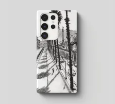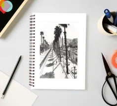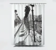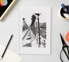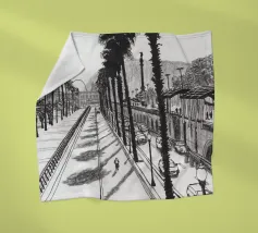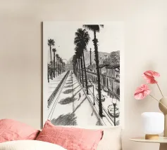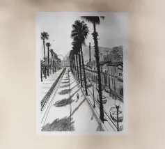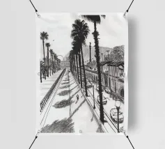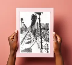 Print van een originele tekening van Takayuki Maejima van een van de meest emblematische promenades in de hoofdstad van Catalonië: de boulevard, gerestaureerd voor de komst van de Olympische Spelen van 1992 in Barcelona.