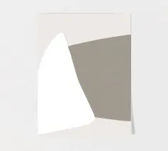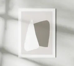 Een rustgevend abstract kunstwerk met twee overlappende organische vormen in warme aardetinten, omlijst door een strakke witte rand. Het zachte ontwerp creëert een gevoel van evenwicht en rust, waardoor het een veelzijdig stuk is voor moderne, Scandinavische of boho-geïnspireerde interieurs.