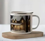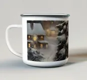 Een schilderachtig kerstdorp schittert onder een vredige winterhemel. Een feestelijk versierde kerstboom staat in het midden, omringd door warm verlichte huizen waarvan de lichtjes twinkelen in de sneeuw. Het tafereel straalt rust, geborgenheid en de magie van stille winternachten uit - een perfect motief voor liefhebbers van de klassieke kerstsfeer.