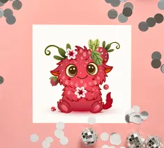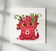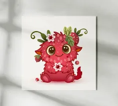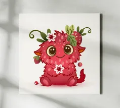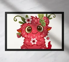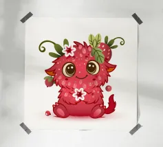 Schattig monster als framboos in een vrolijke kawaii look, met bloemen, bladeren en lieve details - perfect voor kinderen en alle fans van speelse illustraties.Liefdevol ontworpen, vrolijk monster.Speelse details zoals bloemen en bladeren Perfect voor kinderen en stripliefhebbers Schattig figuurtje met een rode fruitlook Ideaal voor fans van speelse motieven