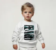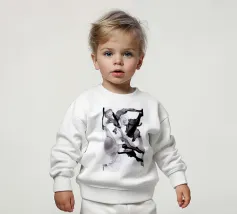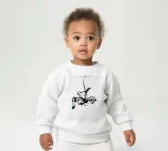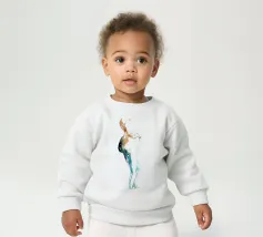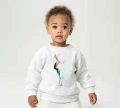 Onze baby sweatshirts bestaan uit 85% biologisch katoen en 15% gerecycled polyester.