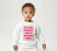 Alle baby sweatshirts worden geproduceerd en bedrukt door onze lokale betrouwbare partner.