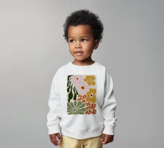 Onze baby sweatshirts bestaan uit 85% biologisch katoen en 15% gerecycled polyester.