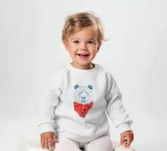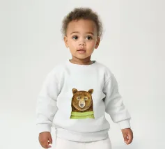 Onze baby sweatshirts bestaan uit 85% biologisch katoen en 15% gerecycled polyester.