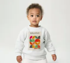 Onze baby sweatshirts bestaan uit 85% biologisch katoen en 15% gerecycled polyester.