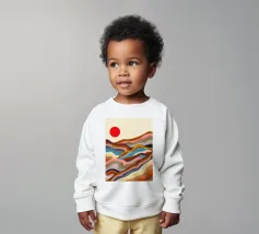 Onze baby sweatshirts bestaan uit 85% biologisch katoen en 15% gerecycled polyester.