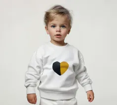 Onze baby sweatshirts bestaan uit 85% biologisch katoen en 15% gerecycled polyester.