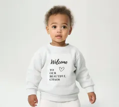 Alle baby sweatshirts worden geproduceerd en bedrukt door onze lokale betrouwbare partner.