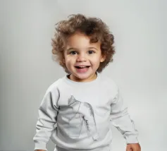 Onze baby sweatshirts bestaan uit 85% biologisch katoen en 15% gerecycled polyester.