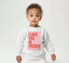 Onze baby sweatshirts bestaan uit 85% biologisch katoen en 15% gerecycled polyester.