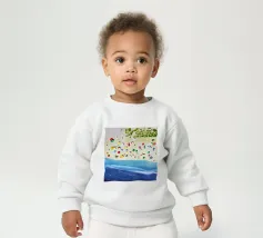 Onze baby sweatshirts bestaan uit 85% biologisch katoen en 15% gerecycled polyester.