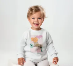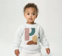 Onze baby sweatshirts bestaan uit 85% biologisch katoen en 15% gerecycled polyester.